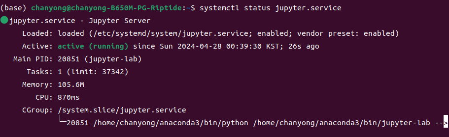초기에는 conda 환경 안에 Jupyter를 설치하여 사용했으나 일부 라이브러리와의 충돌이 있어 기본 환경에 Jupyter를 설치하고 커널을 추가하였으며, 환경변수 등의 문제가 있어 다음 명령어로 사용하였습니다.