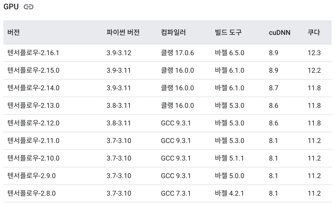 먼저 TensorFlow의 버전을 확인하고, 이에 적합한 버전의 CUDA, cuDNN을 설치해야 합니다.