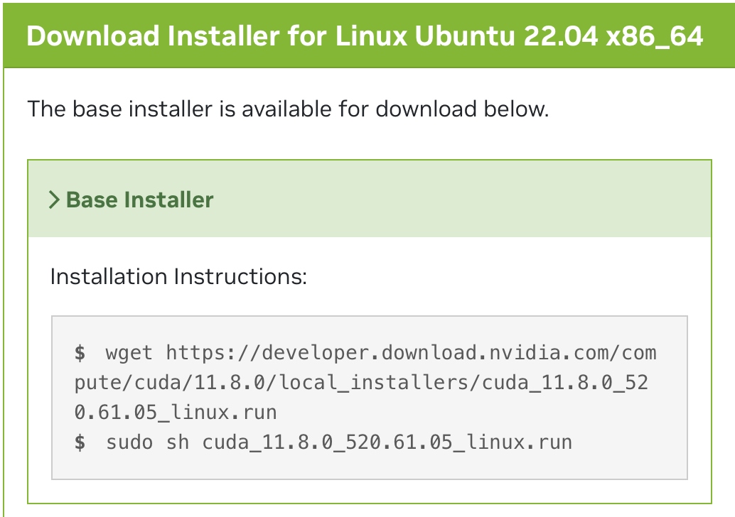 sudo ./cuda_11.8.0_520.61.05_linux.run